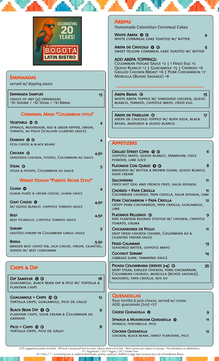 Step into a world of bold flavors at Bogota Latin Bistro Menu, where every dish brings the vibrant taste of Latin America straight to your table. Nestled in the heart of Brooklyn, NY, this spot offers a rich selection of authentic dishes that highlight the best of Colombian and Latin American cuisine. From sizzling steaks to fresh ceviche, each dish is crafted with care and the finest ingredients. Whether you're craving traditional comfort food or looking to try something new, there's something for everyone. The menu features a mix of hearty favorites and lighter options, all designed to transport your taste buds to the streets of Bogota. With a lively atmosphere and a diverse range of flavors, dining here feels like taking a mini vacation to Latin America.
